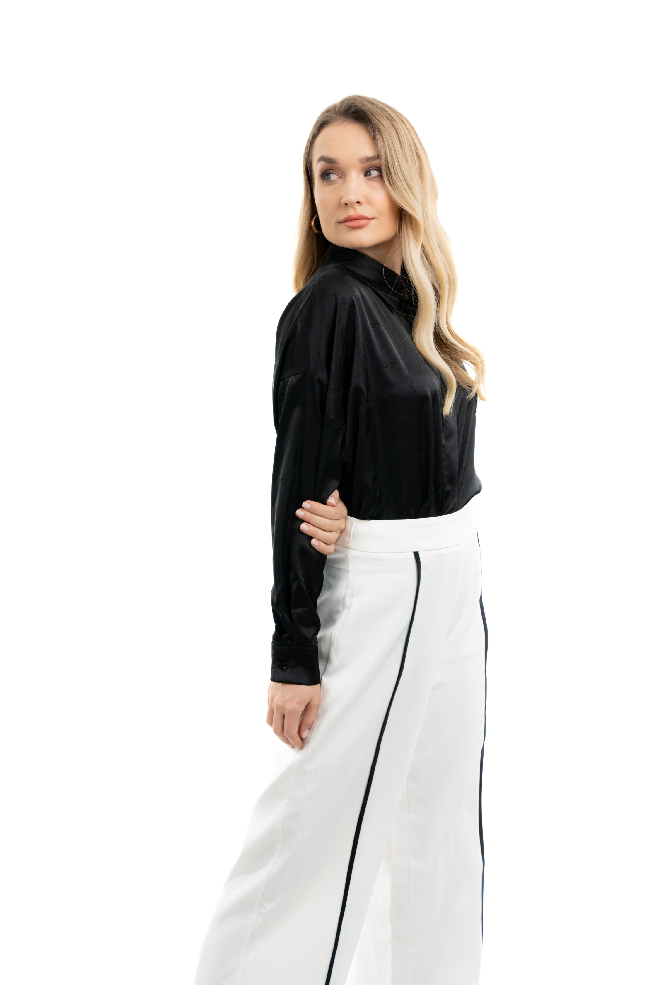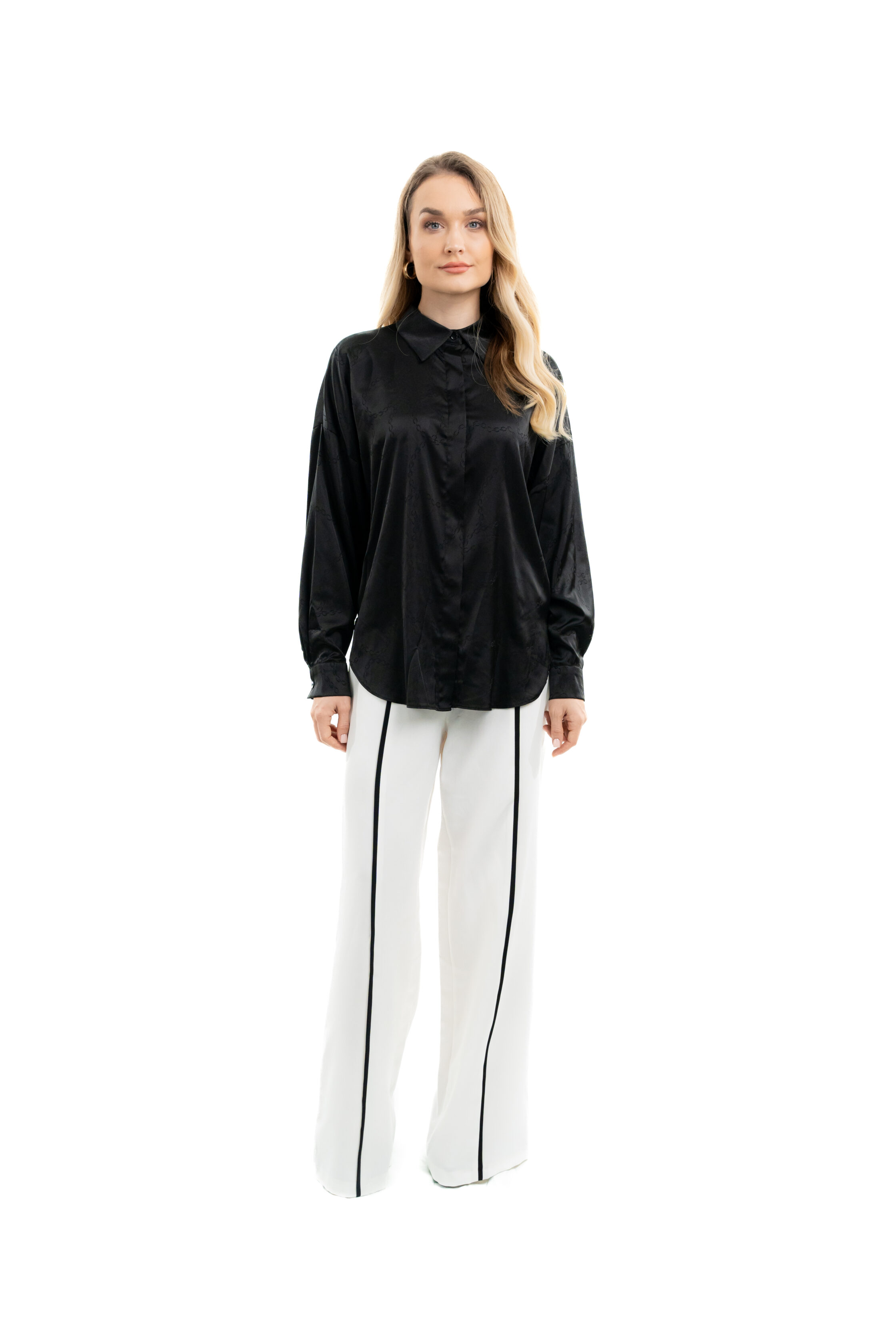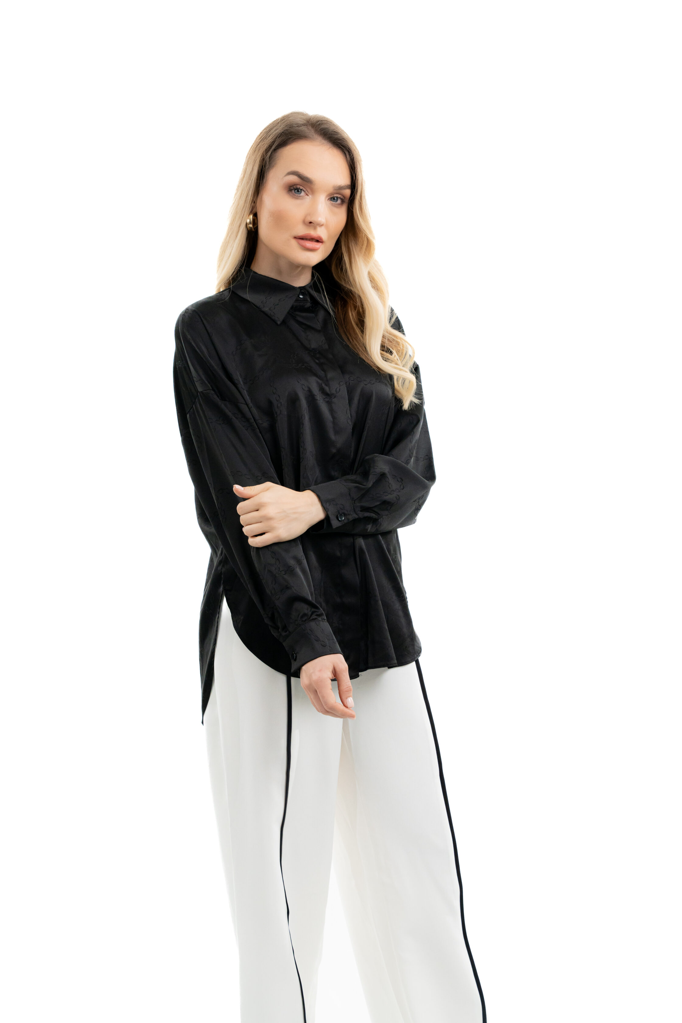 - Long-sleeve satin shirt